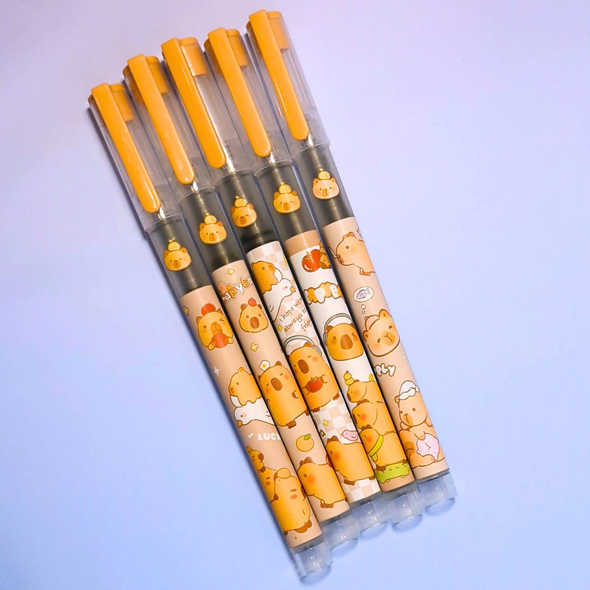 Detalhe especial: Capivaras fofa no corpo da caneta– a mascote zen que vai virar sua companhia favorita!